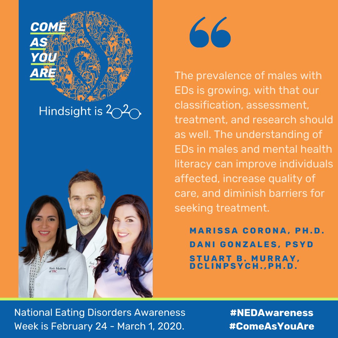 #DYK: 1 in 3 people with an #eatingdisorder identify as male? On the NEDA blog, @DrStuartBMurray and his @USC colleagues take a closer look at what we know & where we need to go next when in terms of men and #eatingdisorders. #NEDAwareness #ComeAsYouAre https://www.nationaleatingdisorders.org/blog/male-eating-disorders-what-do-we-know-and-where-do-we-go-next … pic.twitter.com/GeIrW3mAIQ